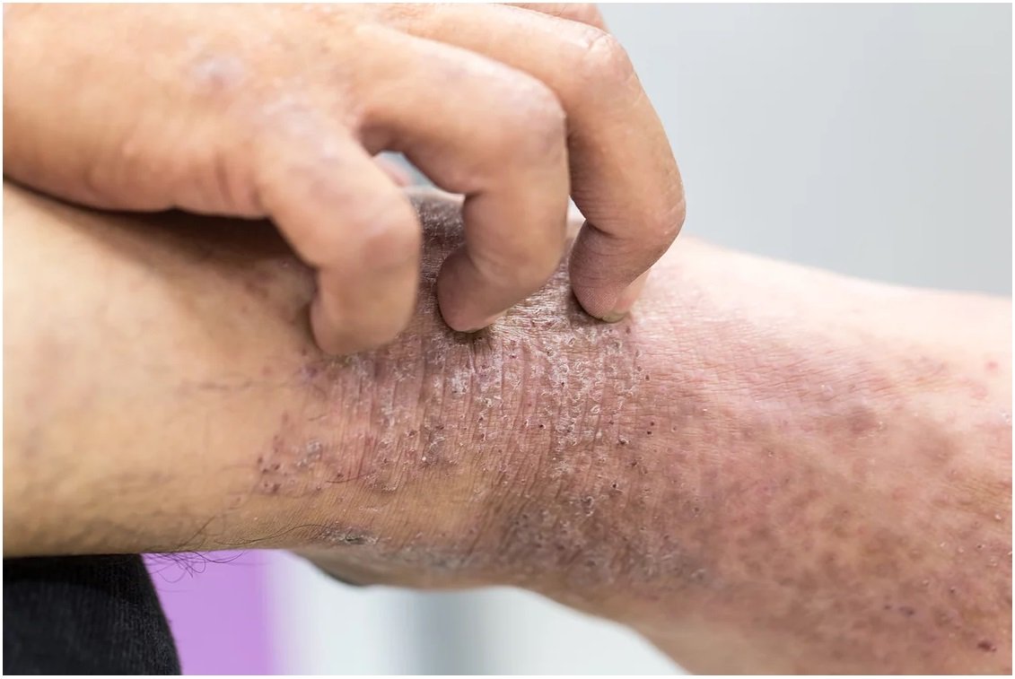 5.โรคผื่นภูมิแพ้ อาการสำคัญของโรคผื่นภูมิแพ้ผิวหนังจะสังเกตได้ว่า ผู้ป่วยมักจะมีผิวแห้ง มีอาการคันบนผิวหนังมาก ๆ ผื่นที่ขึ้นจะเป็นผื่นแดงหรือมีตุ่มแดงนูน ซึ่งหากเกาผื่นจะยิ่งลุกลามมากขึ้น