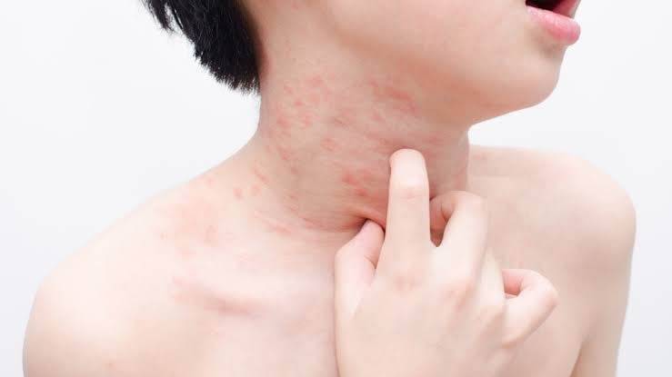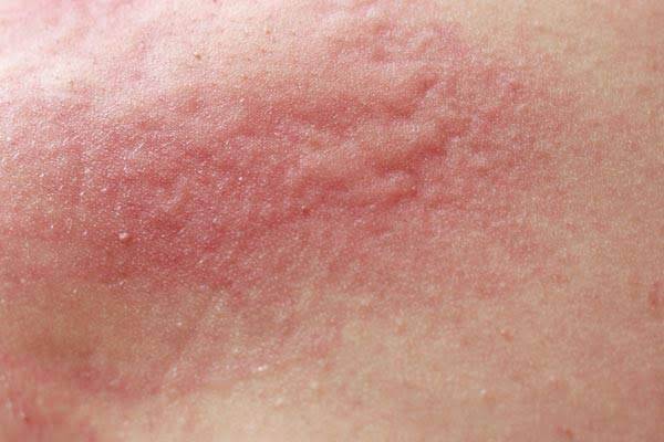 -ผดแดง ซึ่งทำให้รู้สึกคัน เจ็บแสบ หรือระคายเคือง และมักเกิดขึ้นบริเวณผิวหนังที่มีการเสียดสี เช่น อก คอ หลัง และข้อพับ