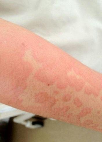 มักเกิดขึ้นอย่างเฉียบพลัน เป็นผื่นลักษณะนูนแดง จะมีขนาดและรูปร่างแตกต่างกันไป อาจเกิดขึ้นได้ที่บริเวณใบหน้า แขน ขา ลำตัว รวมไปถึงส่วนอื่น ๆ ของร่างกาย ผู้ป่วยจะรู้สึกคันมากและหากเกาก็จะเกิดผื่นแดงมากยิ่งขึ้น